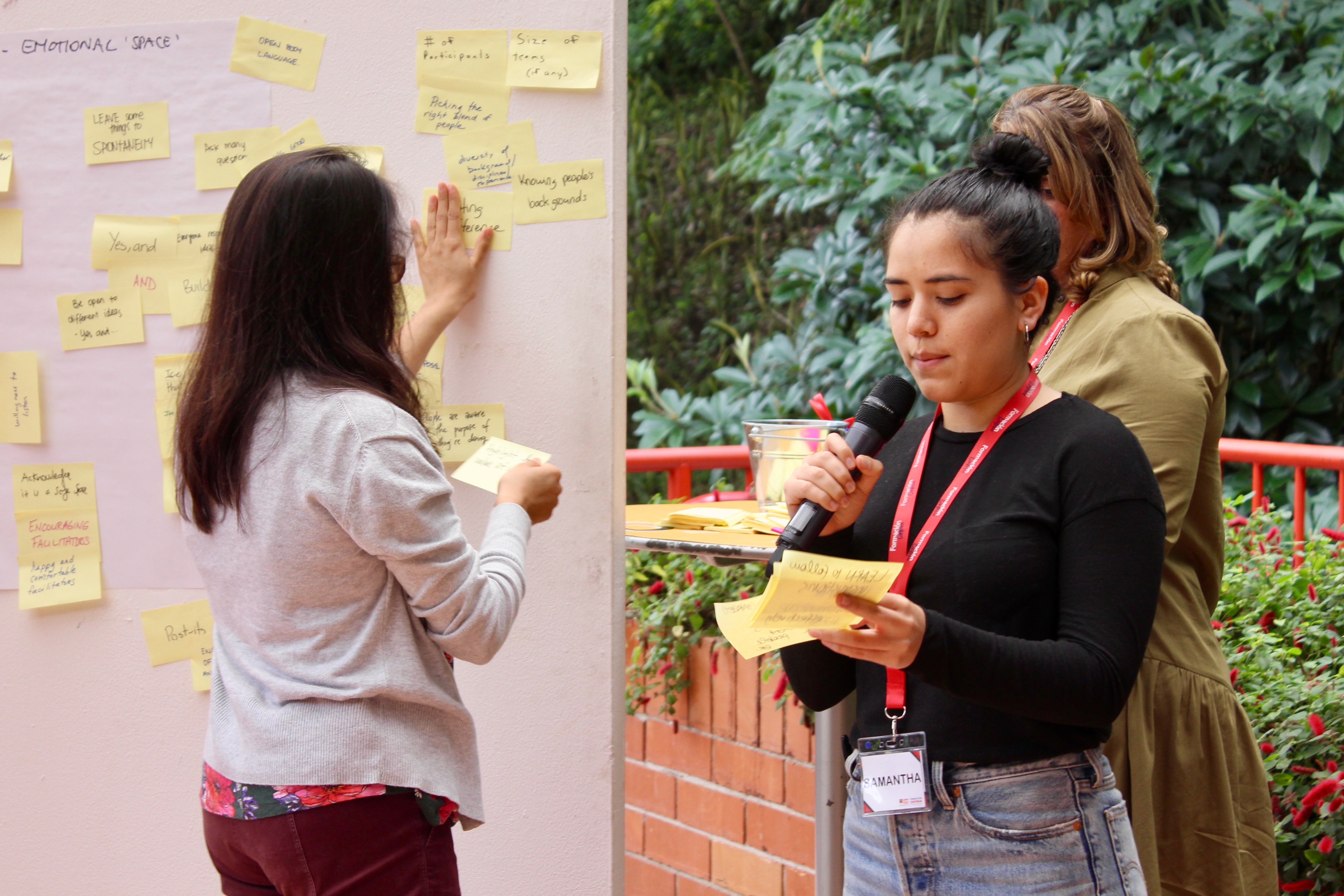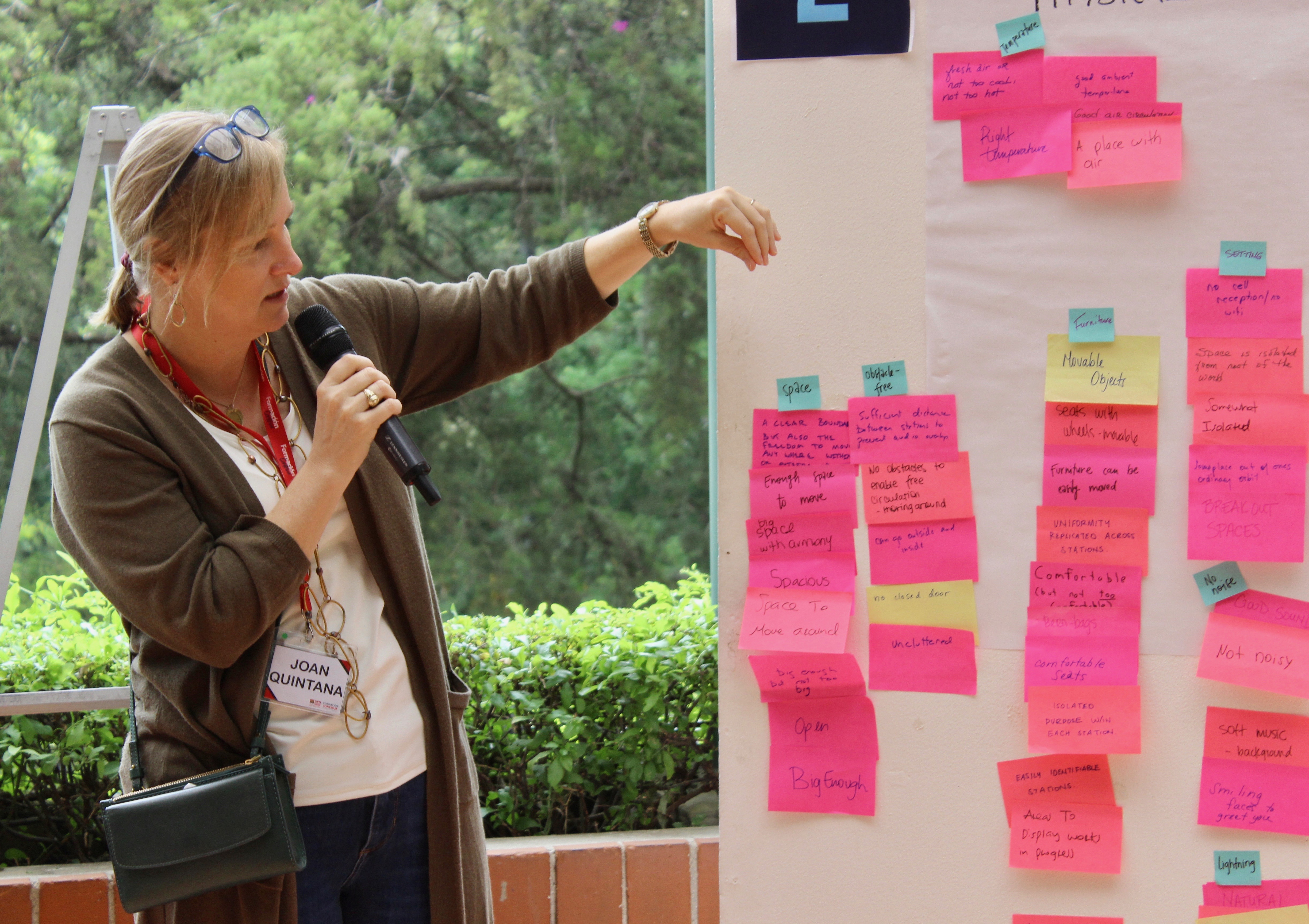 El uso de la herramienta permite involucrar a todos, incluso a los introvertidos y la gente tímida. Los participantes tienen tiempo para pensar individualmente antes de compartir con el grupo grande, escuchamos la voz de todos y la opinión y las reflexiones de todos se pegan en un pizarrón. Los Post-its se convierten en los grandes “neutralizadores”. Y los participantes van practicando escribiendo sus ideas en Post-its, un hábito que vendrá bien en una posible segunda fase en la que colaboran y co-crean los participantes.